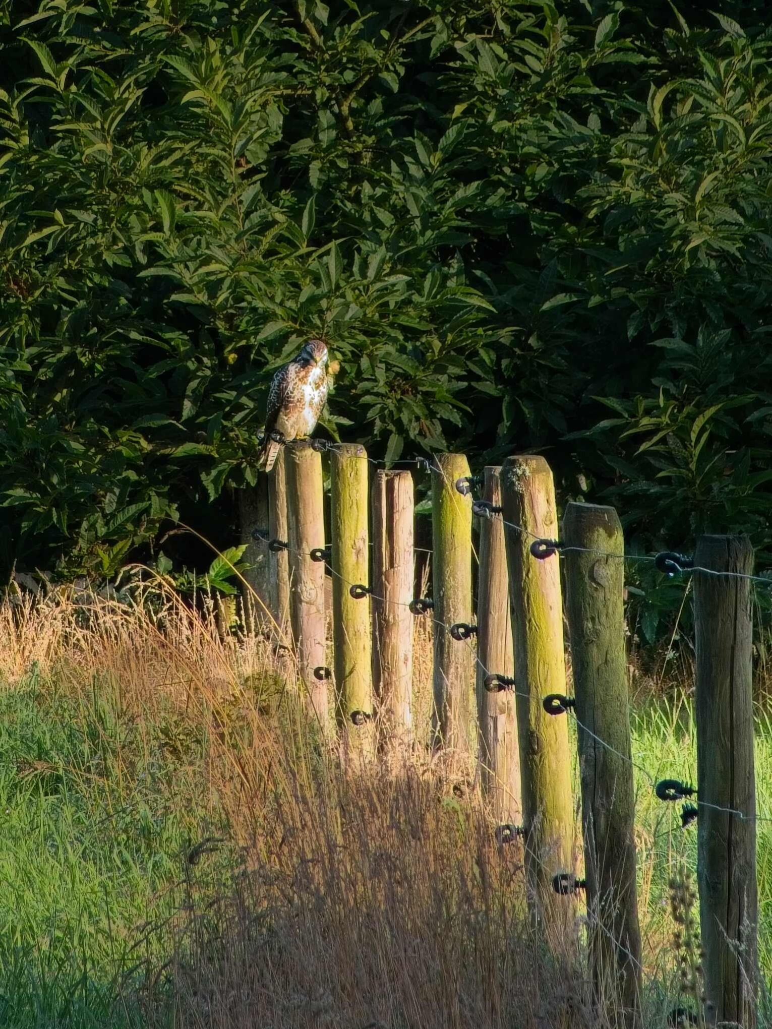 Een wespendief is al een paar dagen in de bosrand actief. Hij het uiterlijk van een buizerd maar een smallere kop en maakt een ander geluid (daaraan herkende ik hem). En ze eten dus vooral insecten en kunnen hele wespennesten leeghalen met hun grote klauwen.