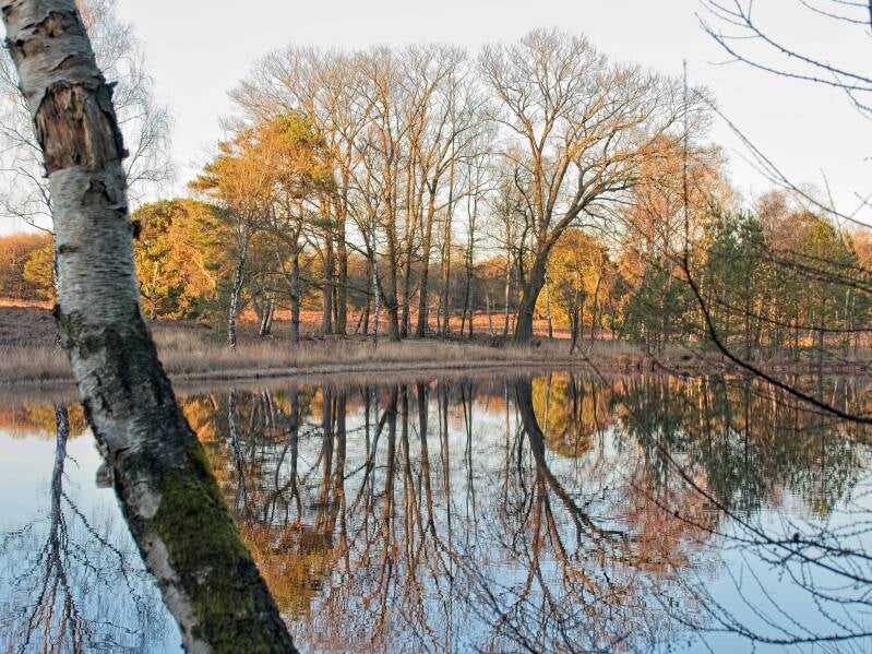 Een paar uur geleden waren de vuurpijlen van oudejaarsavond te zien boven deze bosrand. Nu -vroeg in de ochtend op nieuwjaarsdag 2025- hoor ik alleen de wind door de bomen ruisen en een paar krassende raven beginnen aan een nieuw jaar. Ik ben bij Tonnetjesdelle op de Noorderheide.