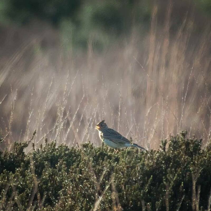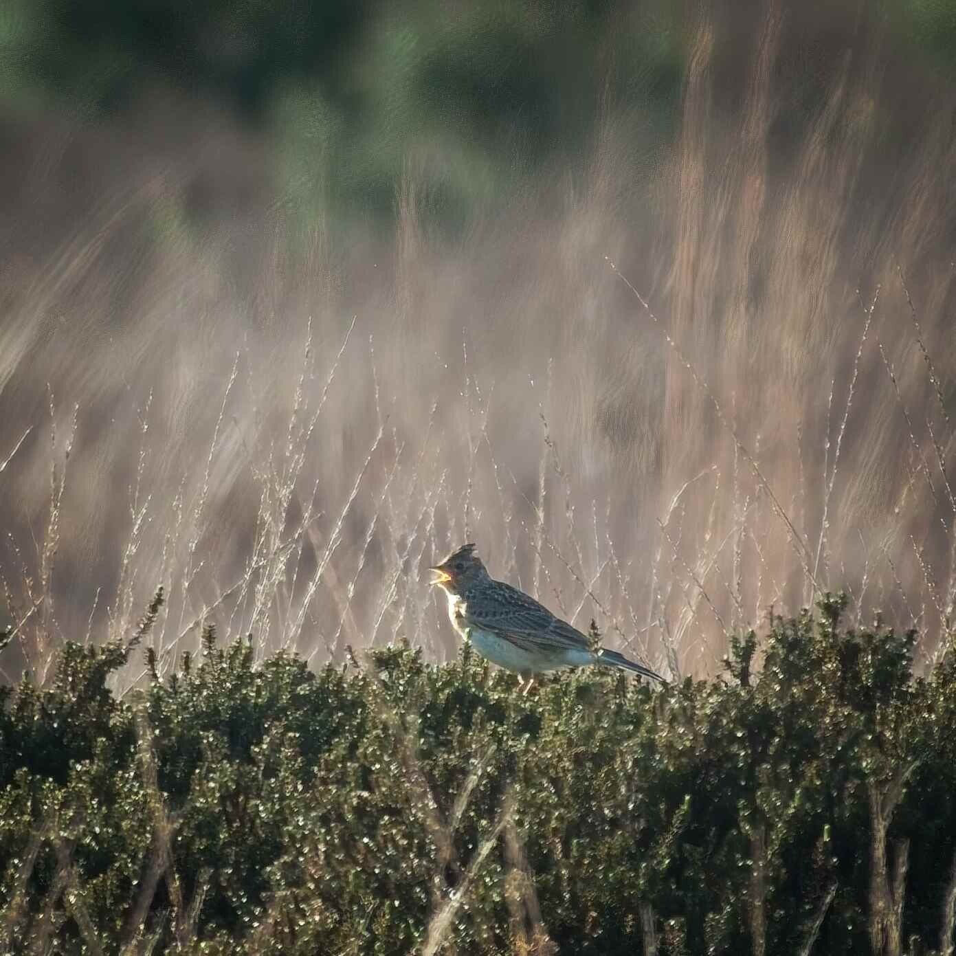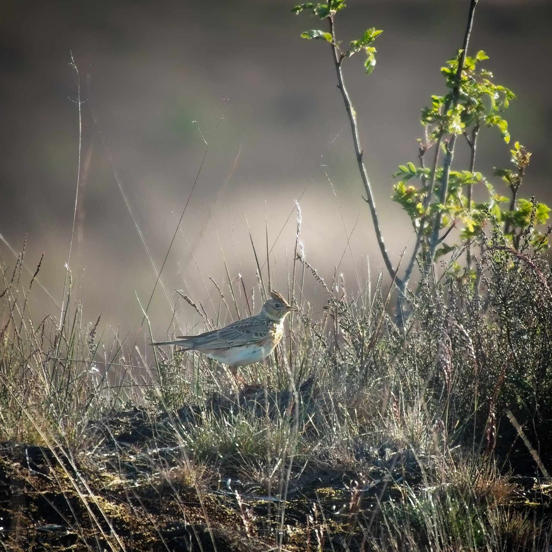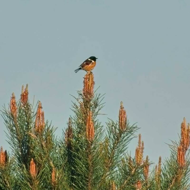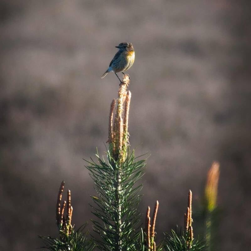 Deze week staat in het teken van speuren naar KBVtjes op de hei. Deze afkorting heb ik geleerd van een vogelaar en staat voor ' Kleine Bruine Vogeltjes'. Op een warme ochtend is de kans het grootst ze te spotten. Soms moet ik opzoeken wat ik nou eigenlijk op de foto heb gezet want in het veld lijken ze veel op elkaar. Ik heb de boompieper zien zingen. Mijn favoriet is de veldleeuwerik die als een helikopter boven de hei hangt en voor dit vogeltje ging ik op pad. Ik zie zowel het vrouwtje als het mannetje roodborsttapuit in de top van een dennenboompje.