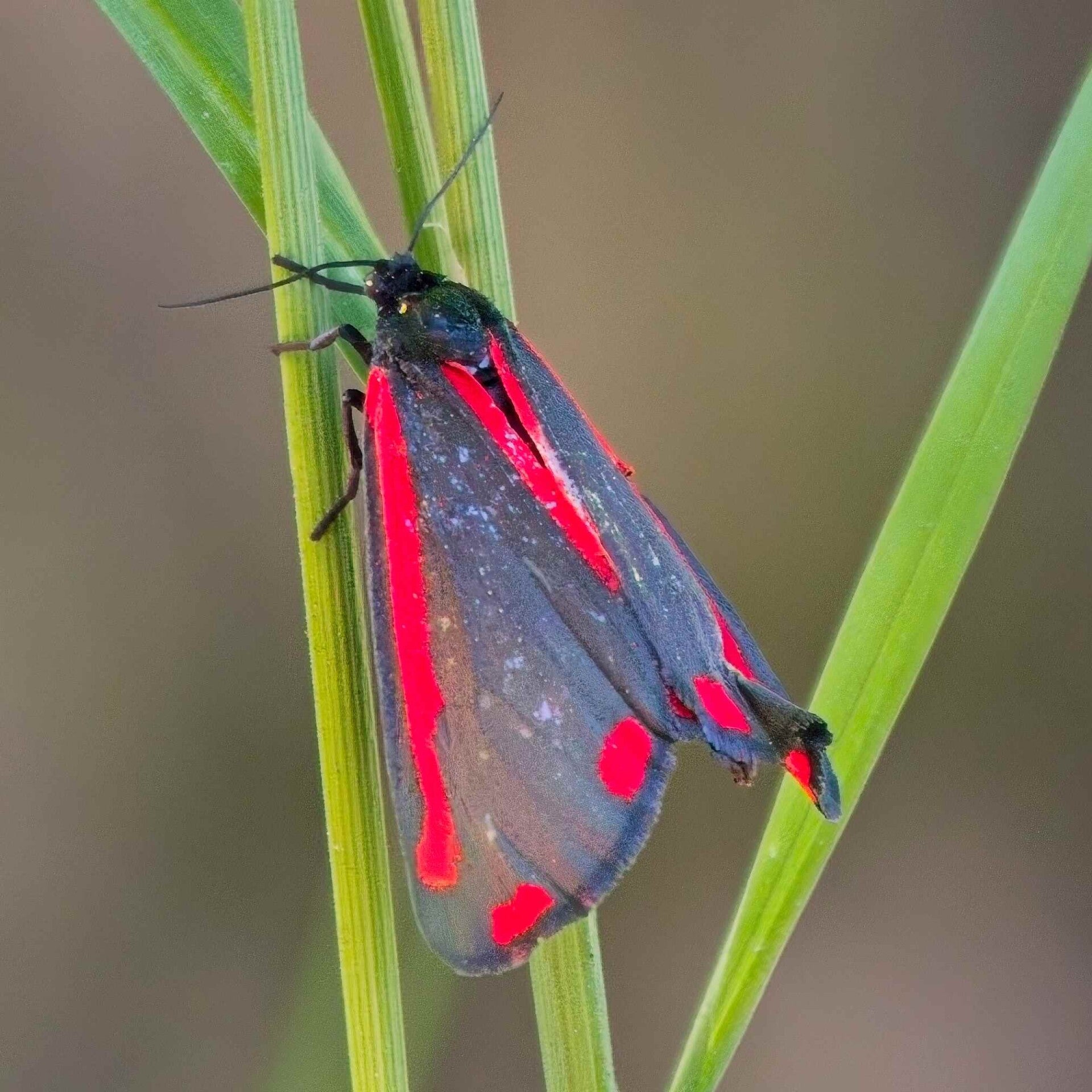 Dit jaar zijn er erg veel meikevers, die kun je niet missen maar de Sint Jacobsvlinder is echt een klein vlindertje en valt alleen op door de rode tekening. De kleine rups is van de witvlakvlinder (weet ik dankzij de Obsidentify app). Kleine priegelbeestjes zijn vooral in de ochtend goed te fotograferen omdat ze nog moeten opwarmen in de zon.