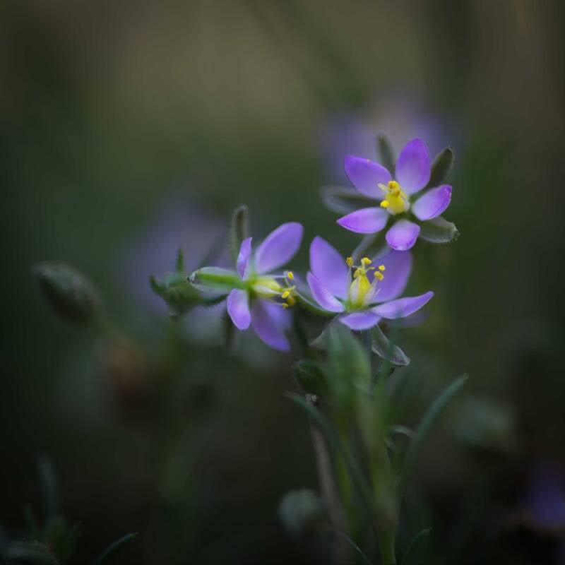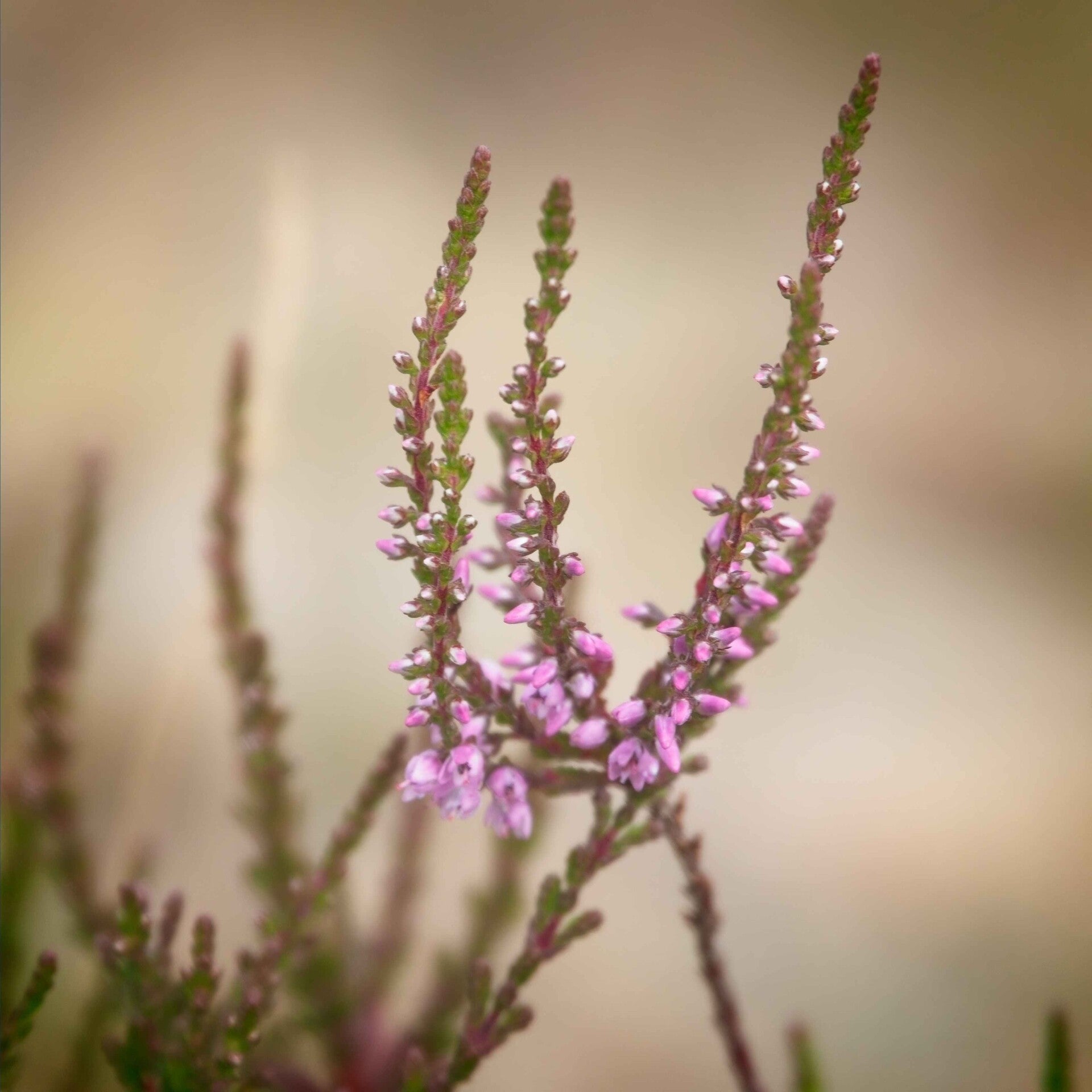 Wonderen bestaan, Evi is buiten levensgevaar en is weer huis! De schrik van vorige week zit er toch een beetje in en de gemeente Nunspeet heeft borden opgehangen in het losloopgebied om honden aan te lijnen. Ik besluit met de macrolens op zoek te gaan naar een beetje kleur. Het is behoorlijk warm en zonnig deze week en de kleine bloemetjes en beestjes krijg ik mooi in beeld. De linkerfoto is rode schijnspurrie; het hele plantje is slechts 5 cm. Heidestruiken die op het zuiden staan bloeien al mooi en trekt de heidevlinder aan.