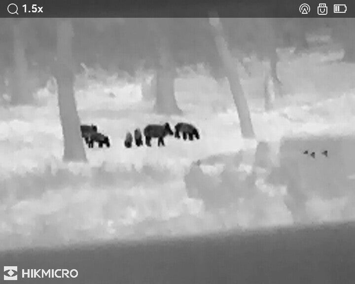 De herten lijken dit jaar in Vierhouten een ingetogen bronst te houden. Er is weinig burlen te horen en ze laten zich nauwelijks zien. Geen idee hoe het komt, maar de BOA had wel een groep wolven gezien in het bos, dan zou ik me ook stil houden. Ik spot wilde zwijnen, ook met de warmtekijker.