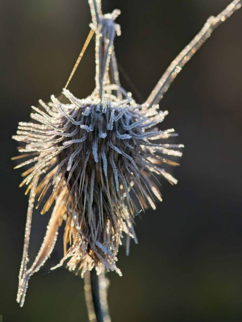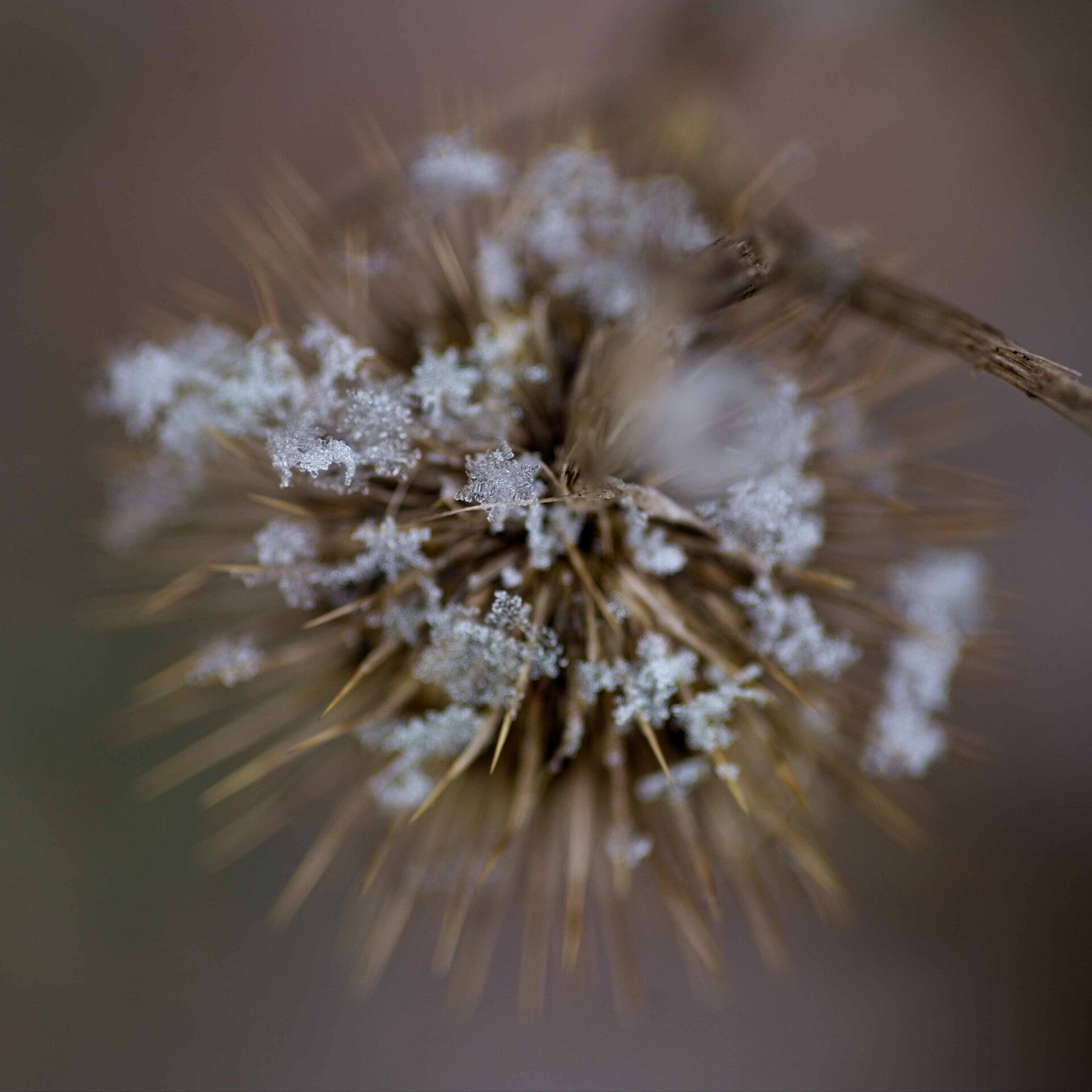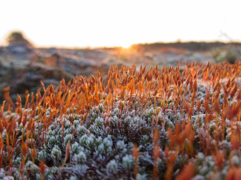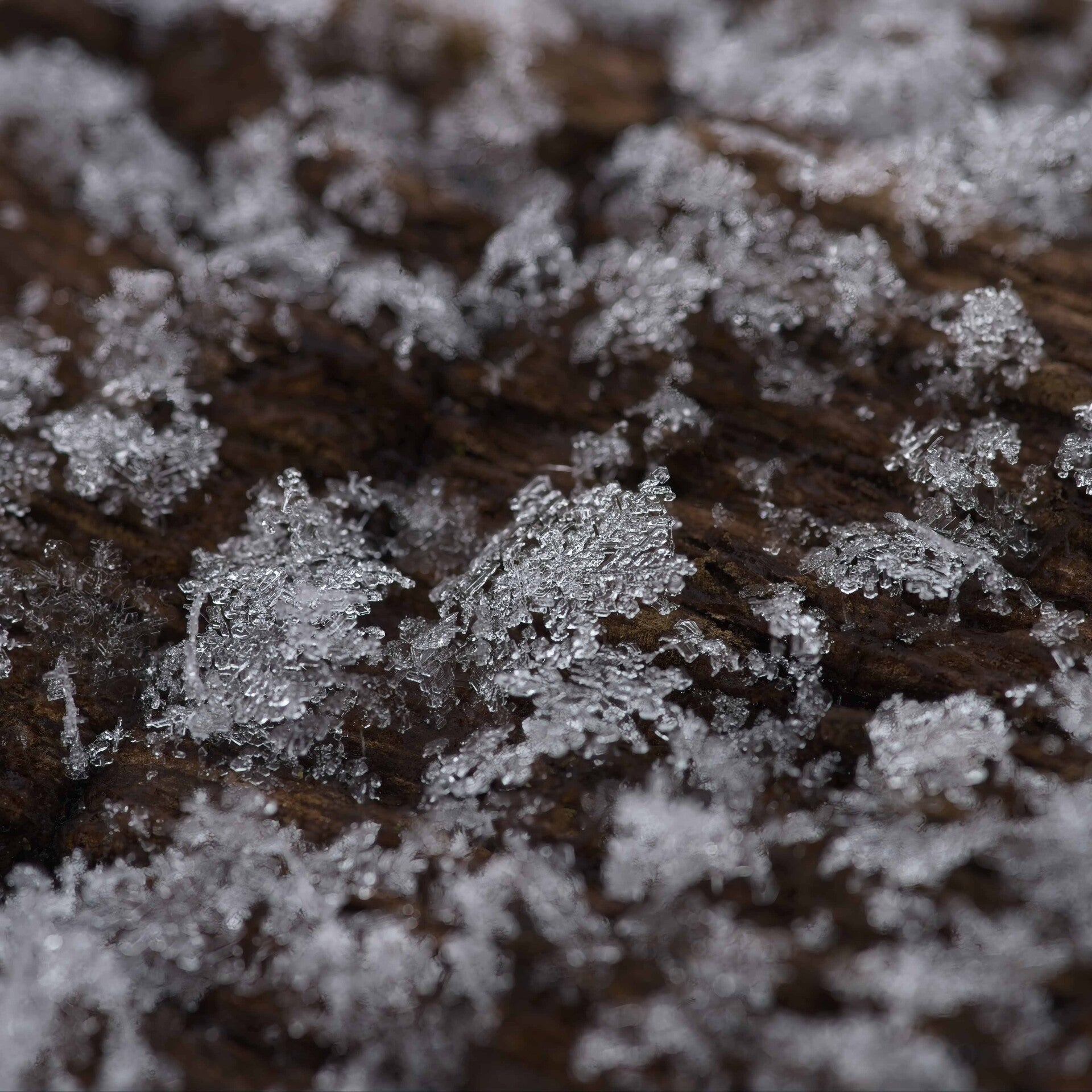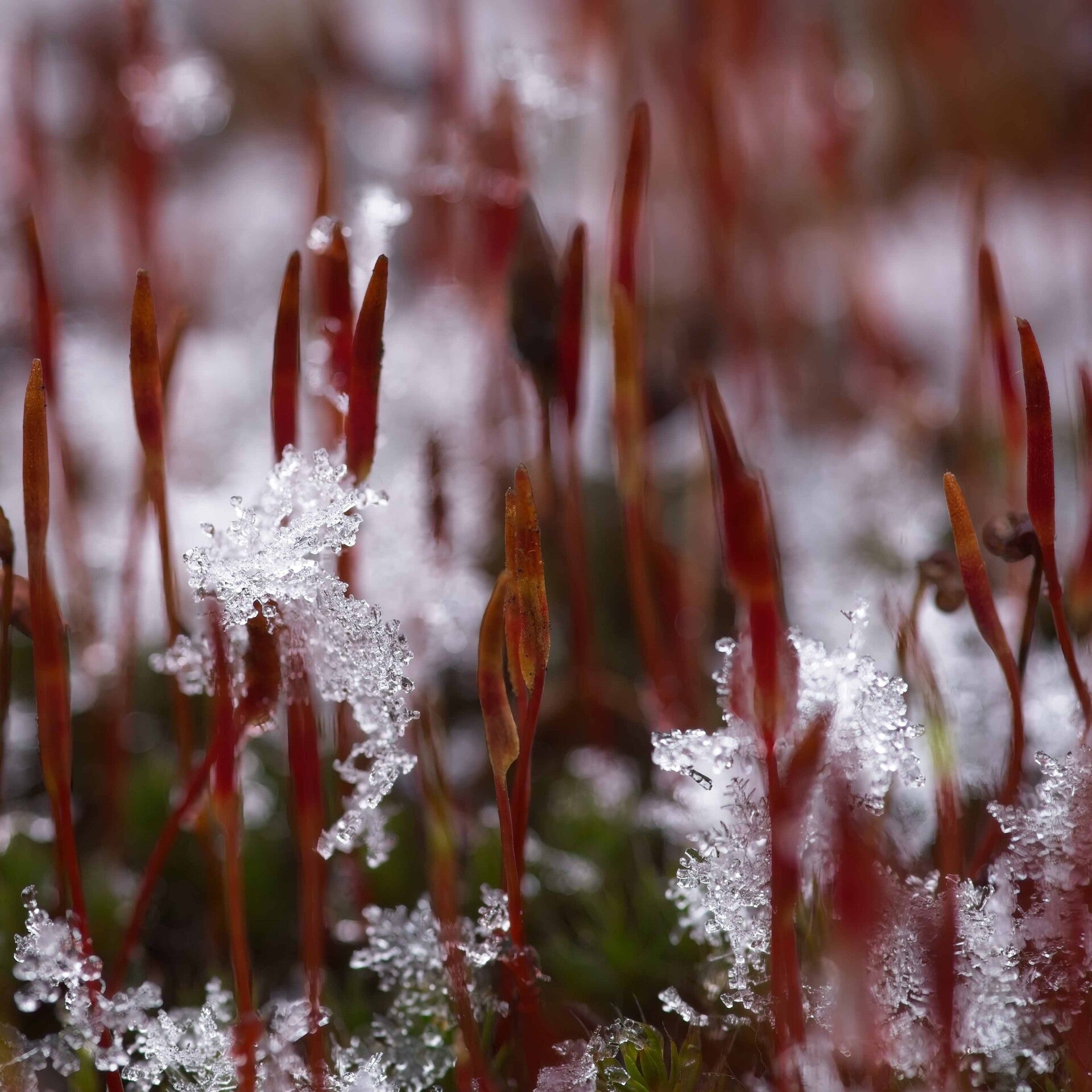Heb je wel eens ijskristallen van heel dichtbij bekeken? Met een macrolens zie je de natuurlijke 'kerstversiering' heel goed op ruig haarmos.