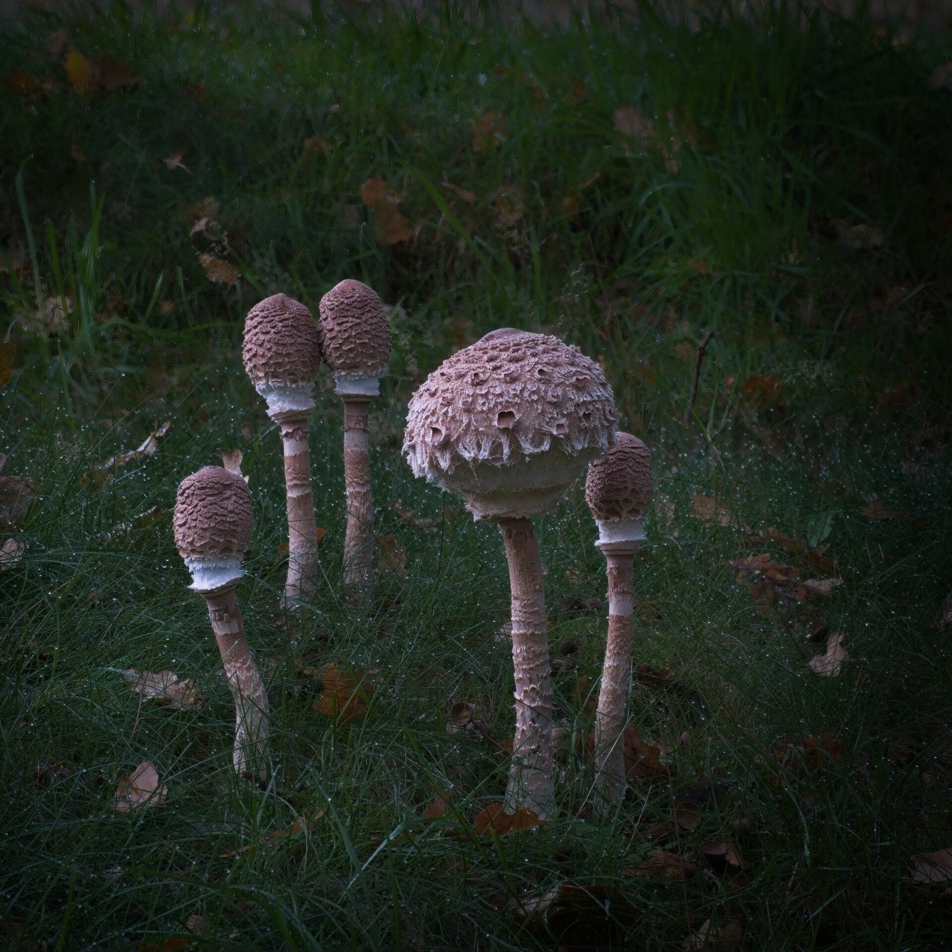 Ik wilde deze week de groeicyclus van parasolzwammen vastleggen maar helaas waren ze op dag drie, wanneer de hoed helemaal uitklapt, door iemand geoogst (gebakken schijnen ze lekker te zijn).
